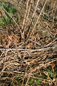 Jerusalem Artichoke stalks used as mulch around a paw paw tree