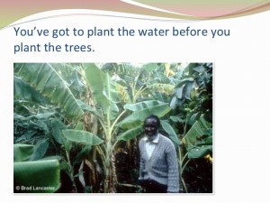 One of the most striking things I took from Brad Lancaster’s book and workshop, was a quote from Mr. Phiri, the Zimbabwean land regenerator he sites in his intro. My Phiri said, “You got to plant the water before you plants the trees.” This makes so much sense especially when you look at the principles such as energy cycling and accelerating succession. The management of cycles is paramount in permaculture and if we don’t complete and leverage cycles then other cycles fail. For example here, if we complete the carbon cycle in some degraded areas by mulching around already planted trees yet fail to complete the hydrological cycle, then its impossible to keep that soil built on site. When I say completing the hydrological cycle I mean making sure that water infiltrates as much as possible instead of erosive runoff. This is the normal pattern of current land management but we can only hope that by doing this vital work of cycling water into the ground and upward through building soil and growing a diversity of plants, the land will turn to an oasis. With this proof the local rural crowd of southern Andalusia, Spain might be inspired to learn more.
