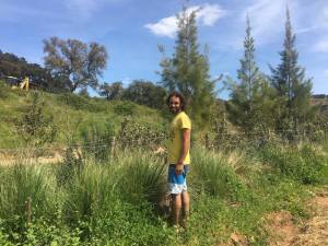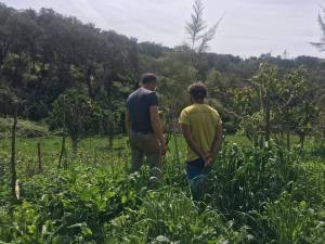 As said above whilst at Josse’s we also toured several properties. One nearby in the Sao luis area was Ferry and Francine’s Herded de Lage / A quinta property. Myself and others like Karsten and Dan had implemented the initial design and garden/ terrace infrastructure. Ferry and Francine, along with lots of volunteers, have been hard at work building up the amazing natural buildings since being there in the initial very tough startup point (2014). The most amazing part of my return after so many years of not seeing it but having many past students pass through as volunteers was the growth of the trees. The garden hedge looked great even though it had a minor set back of some goat grazing. Also down on the terraces I was amazed by what I saw in the initial nitrogen fixer plantings that are now three years old going into their fourth. We planted mainly casuarina and acacia and both have put off remarkable growth on the edge of the terraces. The Casuarina were 5-8 meters tall after just three years and the acacia not far behind. It makes for chop and drop to happen soon and also cover for more tree crops. They will be hosting a PDC in May and I look forward to working with them again sometime in the future.