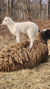 As for the sheep, our first lamb of the year is a sprite single from a mother named honey (katadhin/ St. Croix mix). It was cold when she was born and within days of being alive, she witnessed cold that we haven’t seen in this area in a long time. Ironically, since that crazy Christmas deep freeze, it’s been very mild with signs of spring everywhere. But possibly fallout from the cold beyond snoop the goats’ death, was the stillborn lambs out the last two births. Star baby, our first lamb born (12/21) was due to give birth, and it never happened. Instead, she never could pass the still births and died way too young. Pearl was right behind her, and she was able to pass the stillborn twins and is hanging in there but recovering slowly. The cause is unknown, maybe the cold and calcium deficiency, maybe bacterial as this did happen once before. We had been essentially dry lotting them in one area during the cold period, and after the still births we moved them to new pastures in part for sanitation and also for forage because the grass is growing.