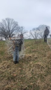 The cells are around 20 to 22 ft spacing wide and 50 ft long. The field itself is broken into four quadrants; rows of 50 ft long beds that are about 150 to 220 feet wide. We just opened up quadrant 4 for production this year with step 1 of burning. In our potassium deficient sandy loam, it helps. Furthermore, our cuttings and root divisions from last year of plants like elderberry, currants, jostaberry, gooseberry, aronia, and comfrey did excellent. So, we are hoping to expand that as our mother plants are one year older and even more diverse. It’s a very large undertaking this 1-acre field with 1000 ft of perimeter fence that we put up last year. The propagations help fuel our edible landscaping work.