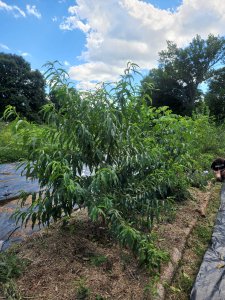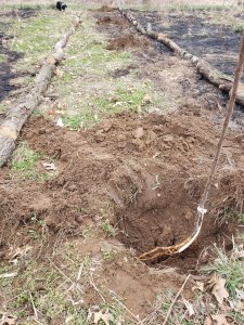 2022 was indeed about scaling up and taking on quadrants two and three with more plantings of agroforestry lines while also creating the field nursery cells. Quadrant two was planted intensively with about ten tree rows totaling 38 trees (Nectarines, tart cherries, apples, Asian pear, peach, plum, grafted paw paw). Meanwhile quadrant 3 was more for clearing and preparing with a bit of planting. One of the first things we did to prepare quadrant two was to burn. Honestly the tree growth in quadrant two post burning was remarkable. It might also have to do with the vast quantities of sheet mulching with cardboard, animal bedding with manure (mainly goat), woodchips, handfuls of vermicompost, and chicken poop from the poop deck wrapped in pdz. What is permaculture? Moving organic matter from one place to another is what we say here as we build inches and inches of soil for these grow beds. And the trees responded to all strategies and techniques showing from finger sized twigs 3 ft. tall to some being forearm sized trunks and 13 ft. tall at the end of one growing season. Furthermore, in quadrant 3 we slowly cleared the vegetation with mowing and silage tarps and got one row implemented before we ran out of planting time. That row was figs, something that could handle being planted in June with the heat and dry coming.