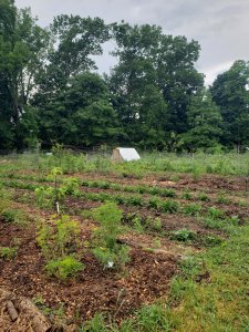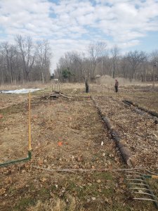 Here is how it started. For some unknown reason, some think it was from a meteorite, this field perched above the backwaters of the Ohio river is full of the sandy loam Petersburg is known for. Its quality is dreamy and was used for farming on and off I am sure for millennia. In more recent times, it was farmed for tobacco in the 50’s-70’s like so much land here in Kentucky. It really had no agricultural use until I burned the field in 2012 and planted an orchard with trees I received as payment for teaching in SE Ohio that winter. But life took me back to Europe and with no cages, not enough care and protection, that failed eventually. Some survived enough to the point when Annie Woods started Dark Wood Farm in 2017 here, she had to uproot a couple of struggling or most likely just rootstock by then. She then created 50 ft long beds in the field which those quadrants, 4 sections of 50 ft long beds that were about 150 to 250 ft wide. She grew a successful market garden here for years allowing me to observe it under the eye of production. I learned a lot from Annie and grateful for the time she had here, the garden development, and the improved soil she left behind.