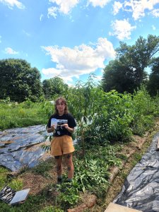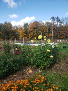 This continued through 2020 and eventually she found a farm of her own an hour away. This left the field to begin the process of succession in early 2021. Some vegetables were left in the field from fall 2020 planting and was fun to watch them bloom and self-seed. Annual weeds took over and then the perennials crept in. My friend Allison in 2021 planted a couple of rows of Dhalia flowers and I supported with some chicken poo from our poop deck and general care. I was so overwhelmed with the launching of the landscaping business that I could only pull off a small garden of my own.