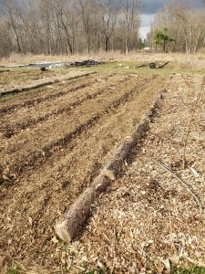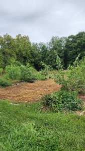 But those gardens got me thinking about what could be along with the flowers, the veggies, the sheep grazing back parts, and the landscaping motifs that were being implemented at clients’ houses. So as the planting season wound down in late 2021, we as a crew launched the framework for an orchard garden. Lines of trees were planted with different layers in between within the rows whilst leaving the alleys in between to be planted in the spring. We made the tree crop rows around 6 ft wide with log borders from the arborist who also drops woodchips. Those rows were planted with fruit trees like peaches, apples, European pears, plout, and apricot. The idea was to trial as many different cultivars as possible and see which ones could handle this intense growing climate of heat and humidity and cold snaps, late frosts, and plenty of challenges. In between the trees within the row went different cultivars of elderberry and/or currants, gooseberry, and honeyberry. The later are meant to be grown as mother plants to clone cuttings off of. The fruit trees, if they prove successful for this climate, can provide scion wood for future grafting.