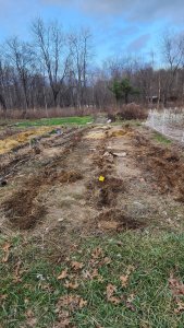 Our fall 2021 endeavors were limited to quadrant one, the southernmost quadrant. This is also the same quadrant I had been working the edges of for about 5 years with fruit trees, berry bushes, perennial vegetables and blackberry trellis’s. These edges taught me a lot about what this soil can handle and how to manage it. You know when you read a description of a tree in a catalogue, it almost always says prefers well drained soil. That we have here in the sandy loam, maybe too much at times because the sand doesn’t hold a lot of organic matter/ fertility. So mulching is ultimately the biggest test of scale. Deep layered mulching is necessary to feed these soils and suppress weeds. Honestly, I abhor weeding, so we spend a lot of time mulching. We feed the soil religiously because that is what it takes to regenerate and produce food.