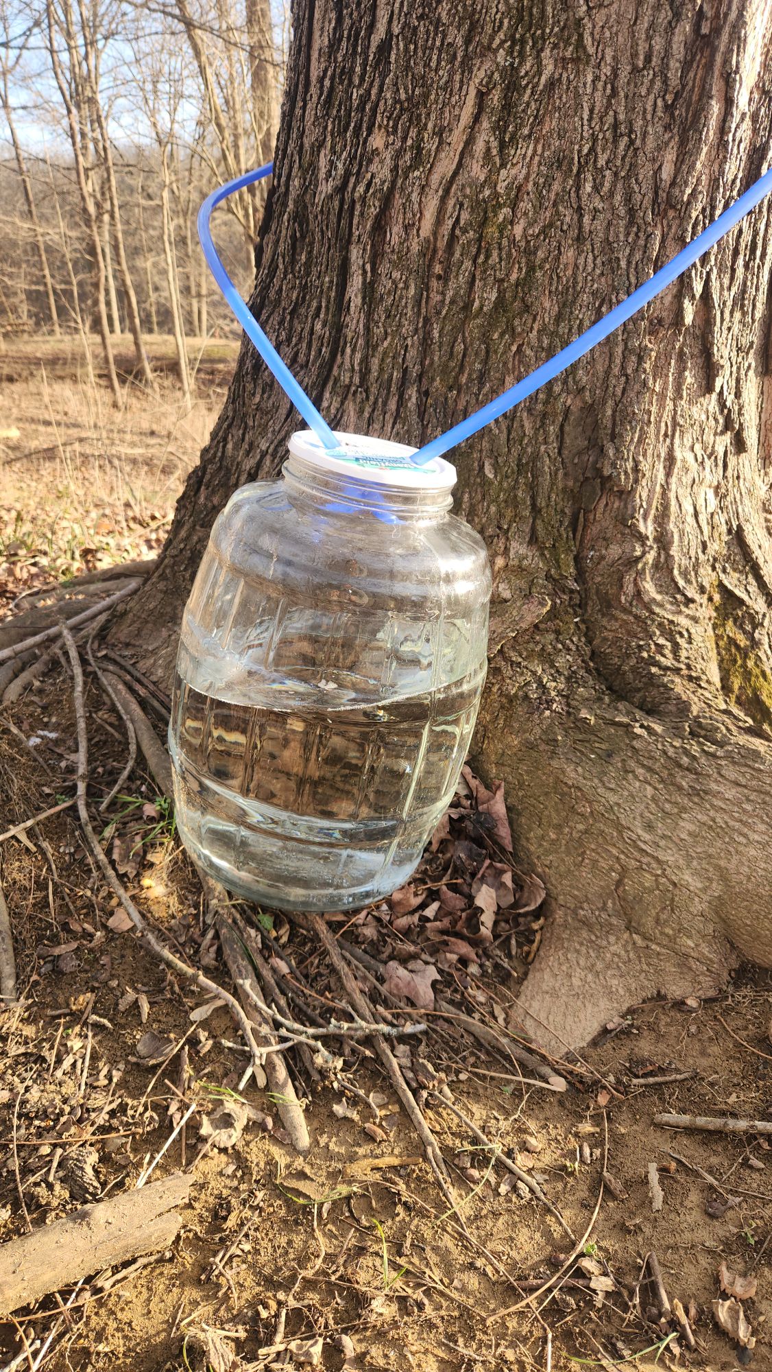 Sweet ’26 Sugarin season has begun as maple trees have been tapped this week with a few to go. A critical part of our silvopasture, homestead food supply, and cottage industry. Lots of washing and packing of materials and tools, drill and fit spile in tree. Then tap-tap-tapperoo away till it thunks and the spout is set. Place glass, put lid on, measure tub, fix it to spile and jug, and wait. Boil downs will probably start tomorrow. Soon delicious and nutritious nonfiltered small batch organic local sugar, maple syrup. Thank you, Dionysus, for this new year and new harvest season.