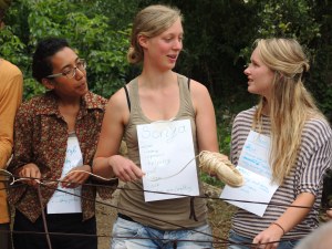 Also we use these exercise as well as morning energizes to build community and resolve the need of community interaction. So sometimes we act like Protozoa and chase bacteria around to physically embody the idea of the soil food web, or sometimes we untie a human chain that made a know to simulate the unfolding of the design process. Again we can tie subjects together as we do in starting the course with demonstrating the brilliance of nature in its web pattern and how we can bring resilience back into our local communities and economies.