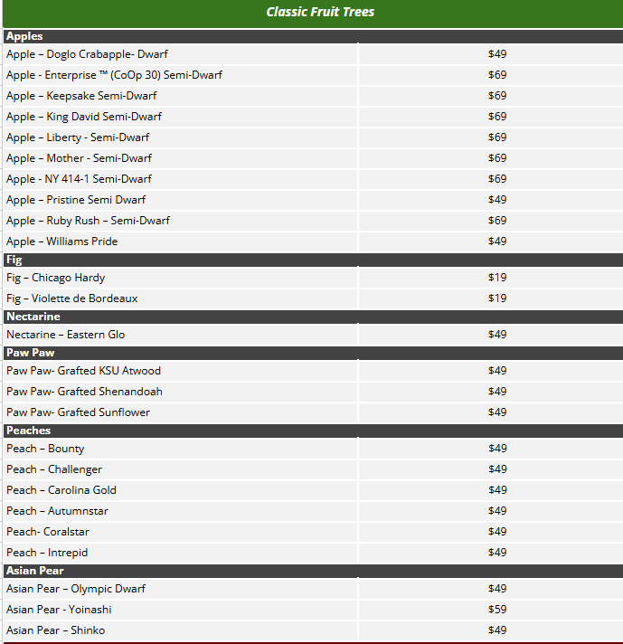 We select for disease resistance and productivity to bring you a diverse selection for the following plantings: