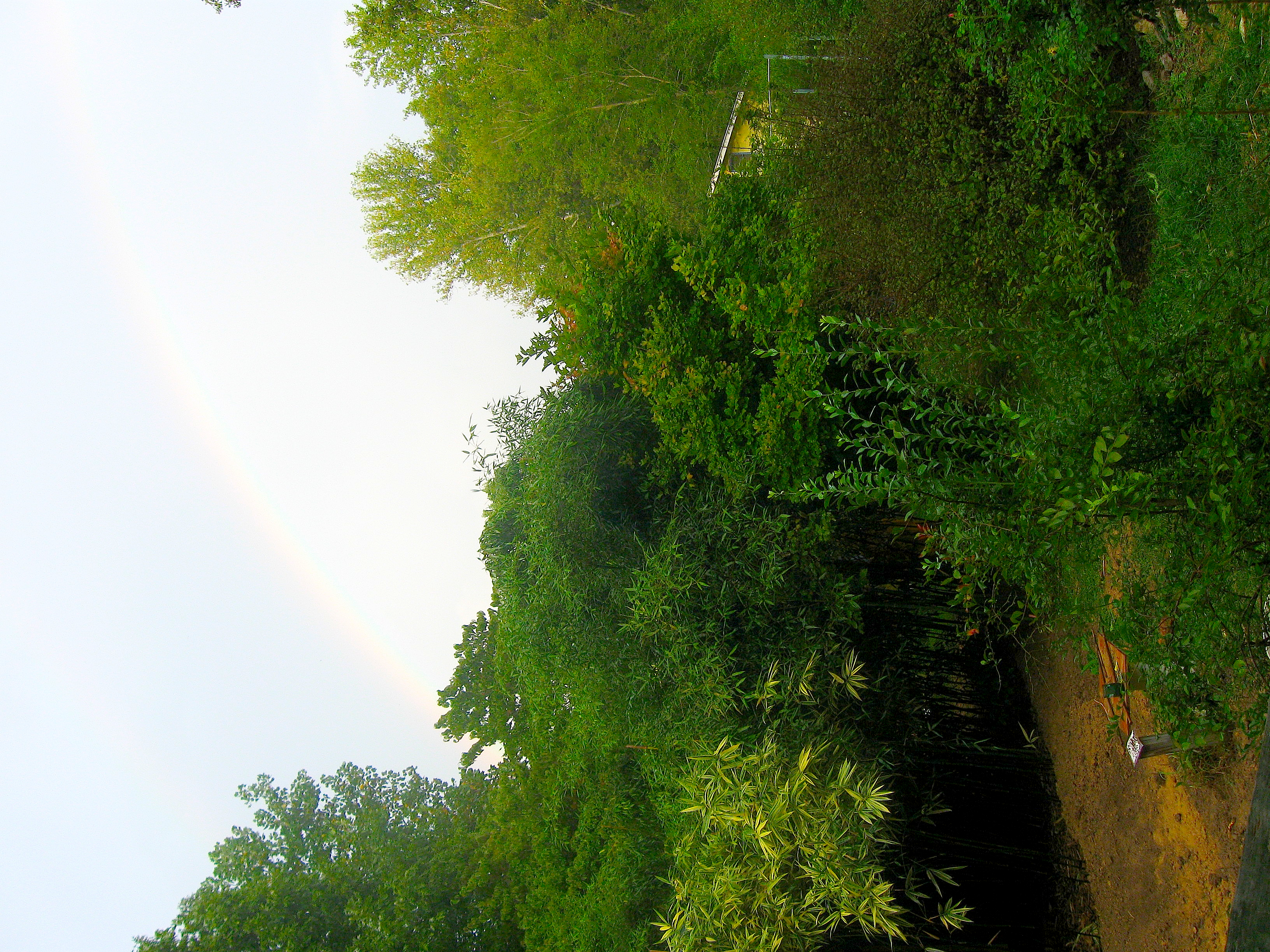 We got to see the rain garden in action very quickly. As we were putting the finishing touches on the Earthwork, we had a very typical summer rainstorm for the southeast of the states. Hard rain for 15 minutes and looking like all hell was going to break loose, then breaking and a rainbow to even grace this new creation. plant the rain and it will come.