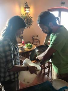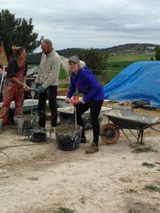 Beyond these hands-on all done in the first week, the second week featured an intense and fun communal experience. After the hands-on demonstration of plant propagation we had around 1.5 hours to plant 150 trees in our keyline alley cropping system of the old wheat field. In June of 2016 with the design of Jesus Ruiz, the first permanent lines of the keyline system were installed under his guidance. In November 2016 we did the first subsoiling to match the keyline design and just before we did it again in March of 2017 we planted the first trees; the drought hardy nitrogen fixers that precede tree crop planting in drylands degraded systems. Thus I ran around like a general shouting out orders to coordinate nearly 30 people digging, planting, watering, putting compost down, and mulching. It went smooth for the most part and we even finished 15 minutes early, thus nearly 2 trees per minute. It was quite easy with the lines already marked by the keyline, the lines having been subsoiled ripped previously, and the soil moisture perfect for this operation. It was a warm morning but people worked really hard in the mid day sun to get it done. With that many hands and feet running around, it truly was a communal experience to once again give back to the host site.
