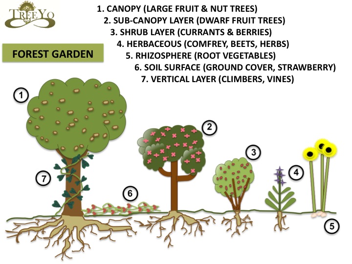 - Lower layers such as oregano, sage, comfrey, cana lily, lemongrass, agapanthus, new zealand spinach, nasturtiums,Rue, rosemary, lavender, and mints