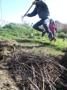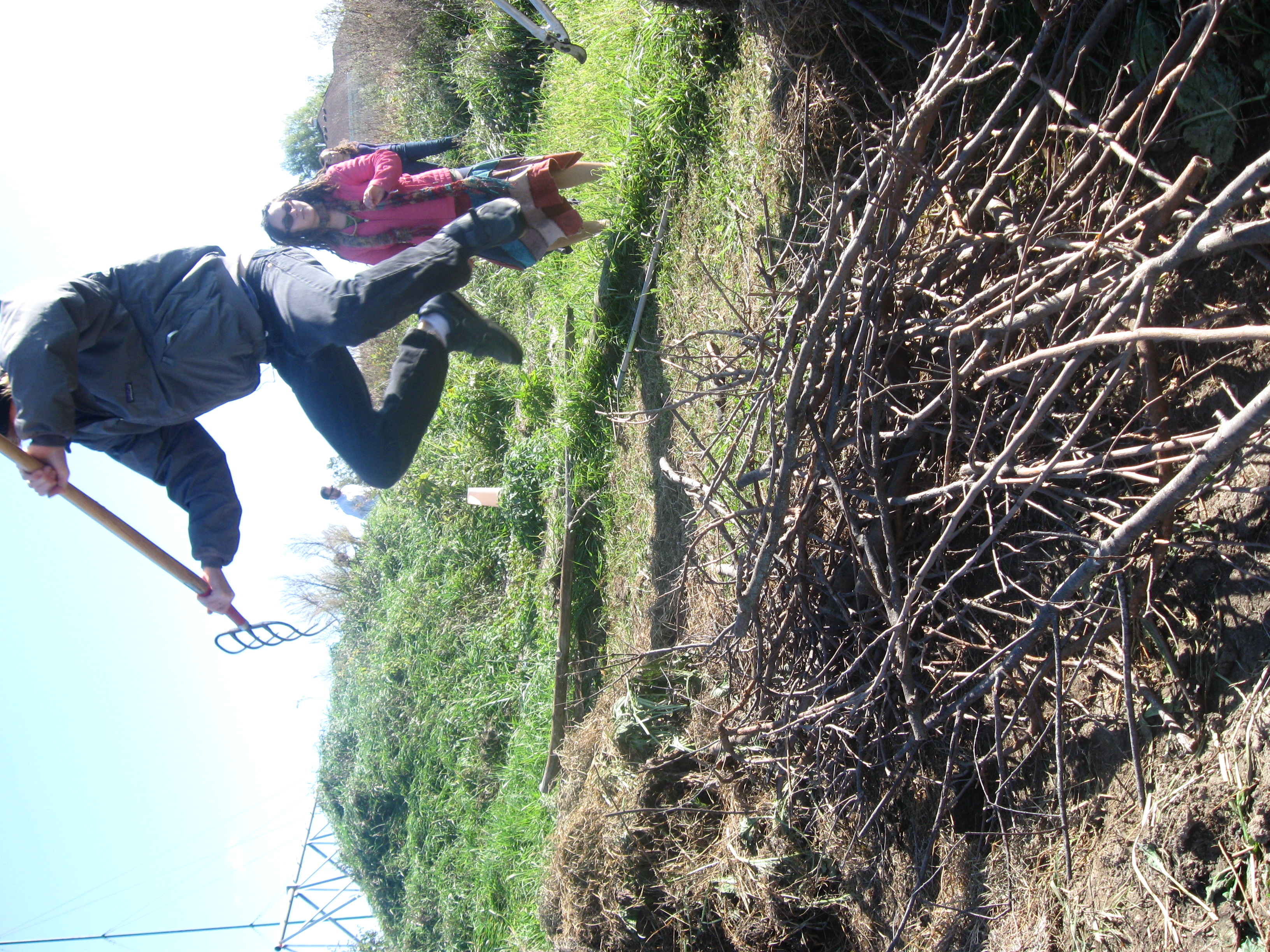 The stations were juggleculture and grafting with Brian , double digging with Alex, and sheet mulching with Nick. This demonstration focused mainly on bed prep or establishment at the MUM student farm. It highlighted different styles and approaches to why you would use these techniques in varying situations. Because of Doug’s learning with Sepp Holzer he relayed to Brian to make the sides of the juggle-culture beds steeper, 80 degrees says Sepp so it is hard for grass to germinate and colonize the beds. It also gave us a chance to explore the horticultural skill of grafting. Students tried this approach as Brian is a proponent of small-scale nurseries to help make communities more resilient.