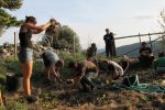 The land itself also benefited from several hands on sessions addressing real needs. In most cases, soils need to be healed on lands that once had intensive agriculture performed on them and this land indeed shows the same pattern. While the small garden was rich in some areas, the overall site would benefit for sure from a good dose of compost extract. Thus we took the first step of the process by attempting to build a hot compost. With the lack of true green material we probably added too much brown material and really lacked a true high nitrogen to kick the process really off. Over time after the initial build to make a 1.5 cubic meter pile, we continued to add water and cow manure which probably helped but a final monitoring never happened. In that case, the problem was the solution and the pile will slowly ferment and breakdown over winter with Mediterranean winter rains. Since we need more fungus in that soil, obvious by lack of breakdown in the brown parts of the grasses, this pile was actually exactly what we needed. And what the group needed in that day 2 moment was to move and do subtle team building through this hands on.