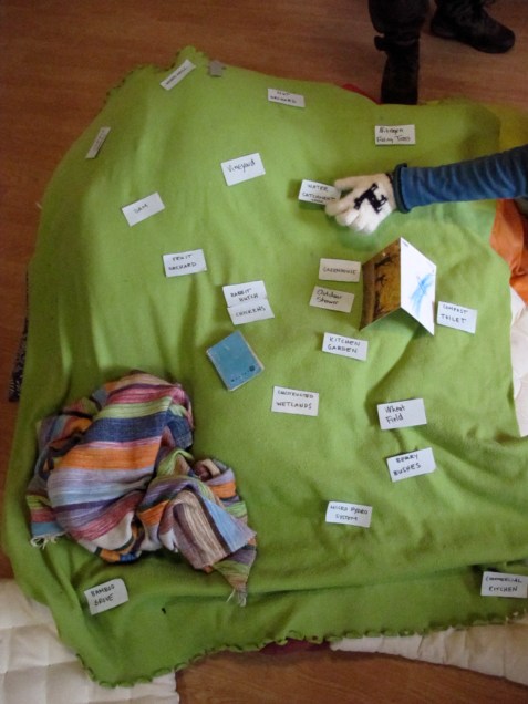 Because of this time of year, the students final designs projects reflected this abundance of water in comparison to the last course in the summer. Good designs were created for the final project with an obvious comprehension of the design process. The students finished full power despite the tough schedule in and around Christmas and New Years. One of the highlights of the course was the final party as New Years was just one day away so the no-talent showed morphed into a long jam session and dance party. As Transition Towns advocates, we must celebrate and the community had a great time partying with sobriety and Howard’s traditional French dances.